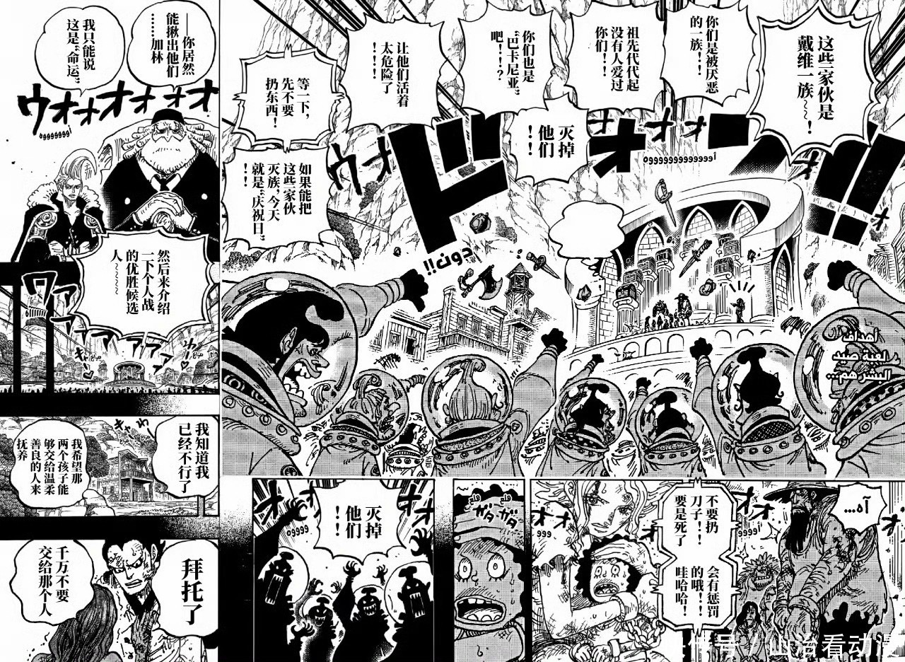 神之谷大战已经爆发,洛克斯海贼团和罗杰海贼团杀入神之谷,他们想要救出夏琪,还要抢夺天龙人的财宝。大妈和凯多去寻找恶魔果实,他们想要得到一些恶魔果实,大妈要把恶魔果实留给孩子,凯多也可以拿下一个恶魔果实。